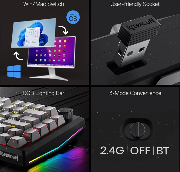 کیبورد بی سیم مکانیکال گیمینگ ردراگون Freyja K687 GG PRO